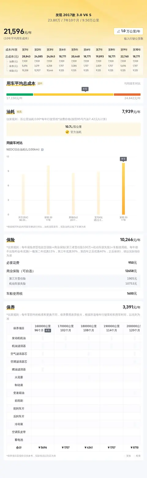 综上所述的新车含税价、用车成本、市场行情、优势分析、同款比价等数据仅供参考。在配置部分,因为二手车非标品,车辆可能会存在配置改装的情况,具体车况信息需要线下结合车辆实际情况进行综合参考。