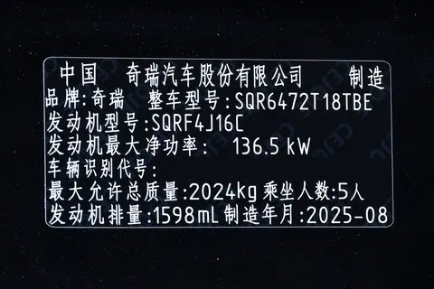 2025款 瑞虎8 PLUS 鲲鹏290TGDI DCT 乘势版 5座内饰