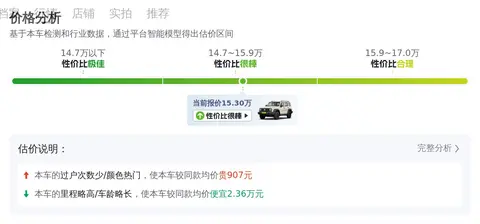 报价相对较高,坦克300 2024款 2.0T 征服者的市场行情价是12.81万-15.85万,它的报价则是15.30万,价格上不占什么优势,但毕竟是2024款的车,所以配置都比较新,同时行驶里程也比较长。
