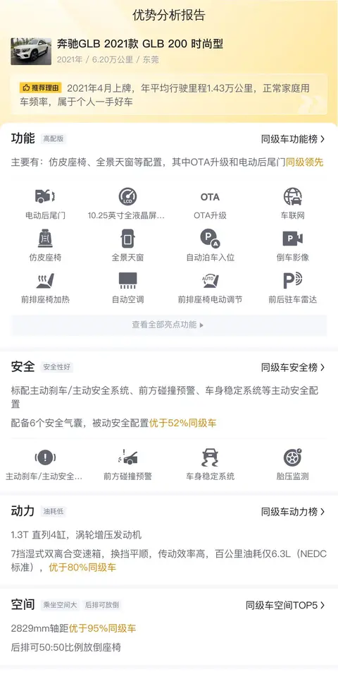 总之,如果你正在寻找一款豪华SUV作为家庭出行的代步工具,那么这辆二手奔驰GLB 2021款 GLB 200 时尚型绝对是一个值得考虑的选择。它不仅拥有出色的外观和豪华的内部配置,更有着卓越的性能表现。而且,最重要的是,你现在有机会以低于市场价的价格将它带回家!所以,别犹豫了,赶紧来抢购吧,让这辆奔驰GLB成为你家庭出行的最佳伙伴!