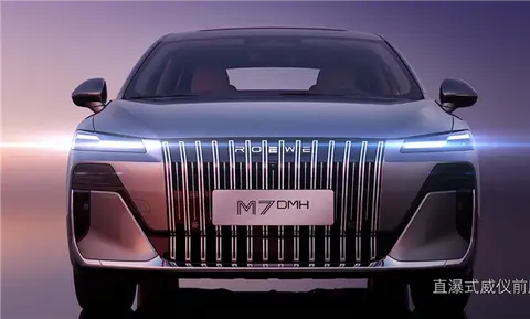 荣威M7 DMH采用了豪华车惯用的直瀑式中网,延续了明珠概念车标志性的纵向视觉延展特征,同时配备了矢量光轨晶钻日行灯,首次加入“ROEWE”呼吸光语LOGO灯,还配备同级唯一的荣耀迎宾光毯。