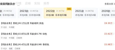 揽胜极光 2022款 极光L 249PS R-Dynamic HSE 奢享版的市场行情价是16.19万-19.10万,它的报价则是19.10万,报价虽然合理,但没有优势,不过它行驶里程较少,车况更新,同时又是2022款,配置也会更高一些。