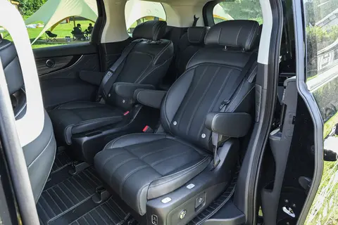 星海 V9 的 “2 + 2 + 3”7 座布局经过优化,第二排堪称百变头等舱。两个豪华航空座椅支持 12 向电动调节,包含前后、左右、靠背角度和腿托调节等,还配备加热、通风和 8 点位按摩功能,主驾座椅带有记忆功能,能满足不同乘客的个性化需求。