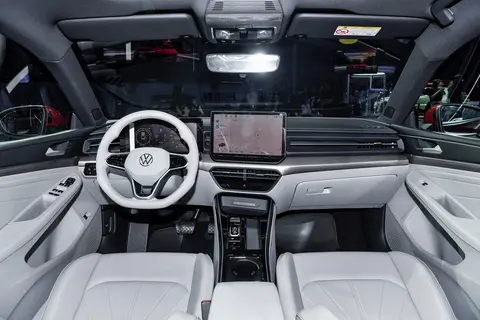 进入车内,全新凌渡L的内饰配置给人一种科技感与运动感十足的感觉。它配备了10.25英寸全液晶仪表 + 12.9英寸中控屏组成的AI智联座舱,大尺寸的屏幕不仅显示清晰,而且操作流畅。车辆搭载了高通8155芯片,为系统的运行提供了强大的支持,让各种功能都能快速响应。同时,还接入了文心一言、科大讯飞等语音交互系统,语音控制识别率高,驾驶者可以通过语音指令轻松控制导航、音乐、空调等功能,提高了驾驶的安全性和便利性。