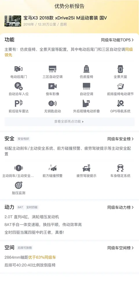 这辆宝马X3 2018款 xDrive25i M运动套装 国V,上牌地为云南昆明,上牌时间2018年11月,表显里程12.30万公里,车身颜色为白色,4次过户记录。新车指导价39.98万,现在的二手车报价15.58万,新车含税价43.65万,能省28.07万。分期购车首付4.67万就可以开回家。这个价格是不是让您的小心脏扑通扑通直跳呢!来吧,兄弟萌,再让心扑通扑通跳会儿,继续往下看吧~