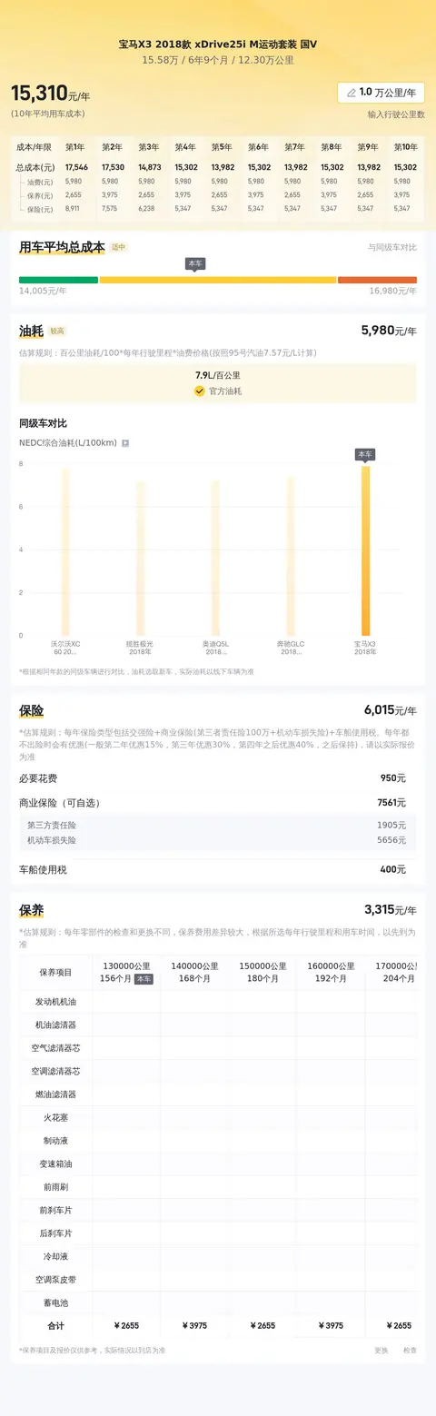 按照当前的市场行情,这款车型的二手车价格大约在16.63万到20.21万之间。当然,市场行情价和最终成交价可是两码事哦,实际成交价得根据车辆的具体情况来定。接下来,咱们来聊聊这辆车的用车成本。据可靠数据,这辆车的10年平均用车成本约为15180元/年,这在同级别车型中算是比较经济实惠的,毕竟养一辆豪华车,咱还得考虑一下“喝油”的钱呢!话说回来,这辆车的油耗在同级别车型里是偏高的,这得归结于发动机排量较大,咱也就能理解了,毕竟想要速度与激情,就得有动力啊!