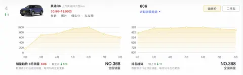 据了解,现款燃油版上汽奥迪Q6在8月份的销量为606辆,而Q6L e-tron系列的销量数据尚未进入懂车帝榜单统计范围。随着四驱版本的推出,奥迪在华电动化产品竞争力有望得到进一步提升。