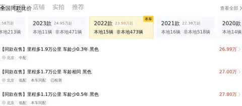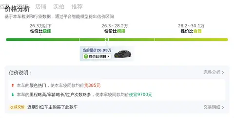 根据懂车帝的数据,这款车型的二手车行情在23.64万至28.15万之间。具体的价格因车辆的车龄、里程以及保养情况等不同情况而定。本车的报价为26.98万,处于合理范围内。在保值率上,这款车的保值率是47.97%,高于同级车的平均值,证明该车在二手车市场的受欢迎程度较高。