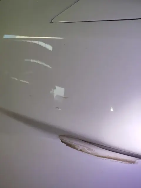 [第二个问题是左侧底边梁有划伤,这也属于正常使用中的磨损。