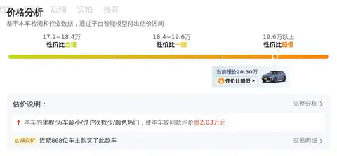 综上所述的新车含税价、用车成本、市场行情、优势分析、同款比价等数据仅供参考。在配置部分,因为二手车非标品,车辆可能会存在配置改装的情况,具体车况信息需要线下结合车辆实际情况进行综合参考。