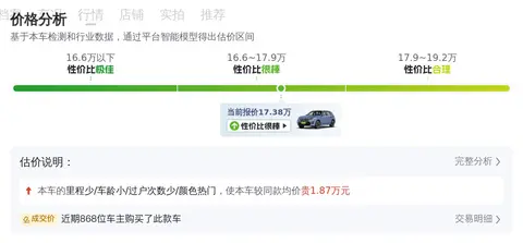 综上所述的新车含税价、用车成本、市场行情、优势分析、同款比价等数据仅供参考。在配置部分,因为二手车非标品,车辆可能会存在配置改装的情况,具体车况信息需要线下结合车辆实际情况进行综合参考。