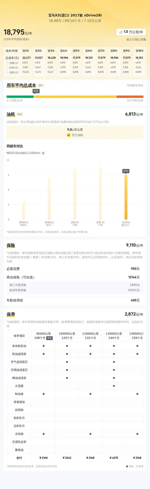 年度用车成本估算约为1.86万元,包括油费、保养费和保险费等。这一估算基于实际使用情况可能会有所不同。