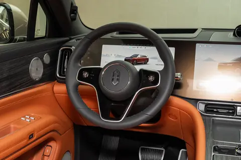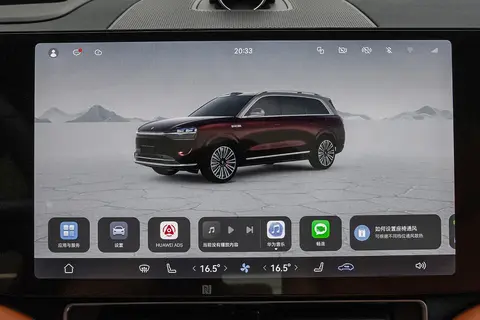 内饰方面,2025款问界M9中控台继续使用一体式三联屏布局,包括12.3英寸液晶仪表盘、15.6英寸中控屏和16英寸副驾娱乐屏。标配静音电吸/电弹门、自适应近光灯、自适应矩阵大灯、自动远近光切换、智能交互矩阵大灯、AR-HUD抬头显示、方向盘加热、三区自动空调、香氛系统、第一和第二排座椅通风/加热/按摩、第三排加热、冷藏和保温双用车载冰箱等。
