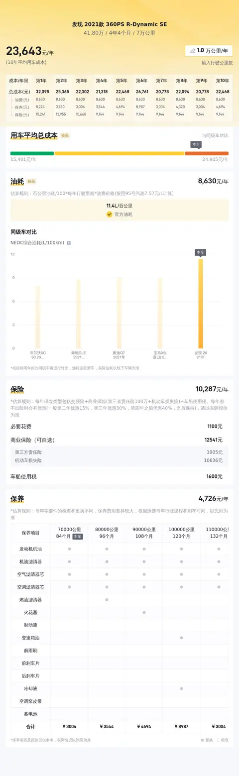 购车时不仅要考虑购车成本,还要计算日常使用开销。基于对该车型的全国保有量和在售二手车均价的大数据分析,我们得出这辆车的性价比指数为73%,并据此估算了未来五年的平均用车成本。值得注意的是,实际费用可能会因使用频率、地区消费水平、油价波动和保养习惯等因素而有所不同。