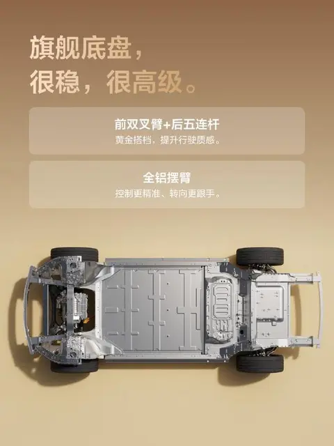 IT之家从官方介绍获悉,这款新形态五座 SUV 采用原生纯电架构,同级更高车身扭转刚度 52014 N・m / deg,低重心设计。底盘采用前双叉臂 + 后五连杆,并且配备全铝摆臂。