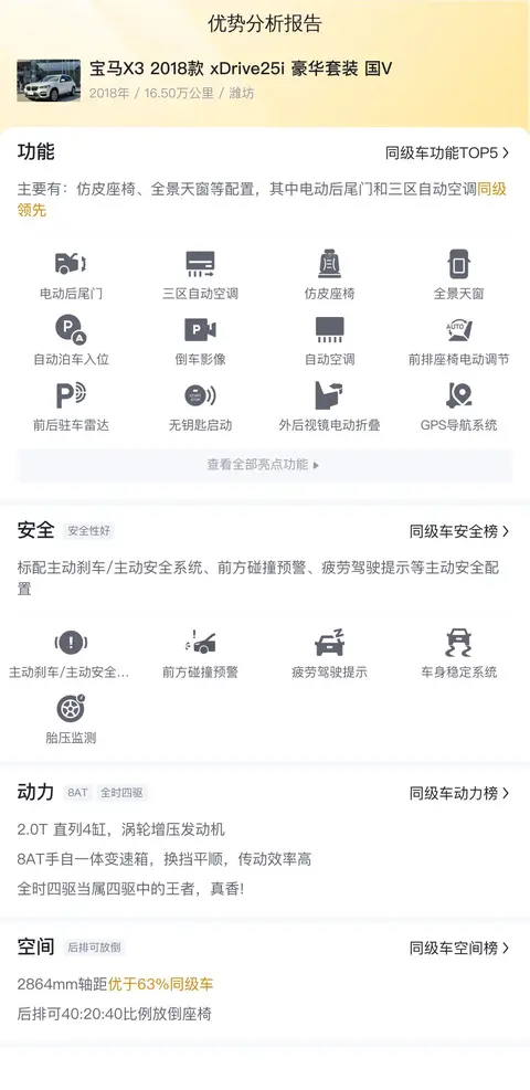 综上所述的新车含税价、用车成本、市场行情、优势分析、同款比价等数据仅供参考。在配置部分,因为二手车非标品,车辆可能会存在配置改装的情况,具体车况信息需要线下结合车辆实际情况进行综合参考。
