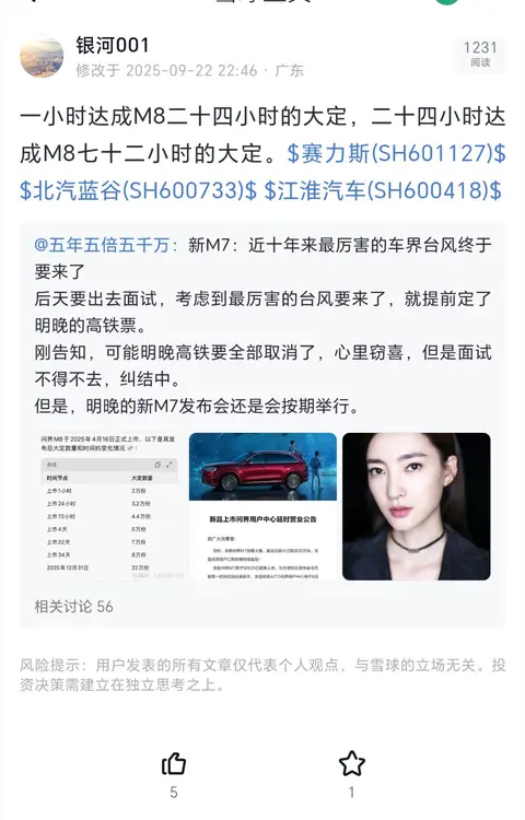 m7小定23万,是m8的约1.5倍,在普遍唱衰的情况下依然有1小时3万大定,是m8的刚好1.5倍,也已经接近m8二十四小时的量。