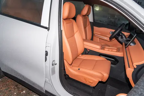 内饰风格走的是简约而不简单的路线,配色有“赤霞橙”和“星垣紫”两种主题,座椅采用双缝线绗缝工艺,质感挺不错,坐上去手感柔软而且包裹性好。方向盘用的是麂皮材质,握感舒适,功能按键布局合理,操作起来很顺手。考虑到家里有小孩,车内大量采用了圆润的设计元素,减少尖锐棱角,降低磕碰风险,这点我觉得很贴心。材质选用的是获得OEKO-TEX认证的无毒亲肤面料,跟婴幼儿奶嘴材质同源,抗污耐磨又安全,家里有小孩的家长绝对会喜欢。