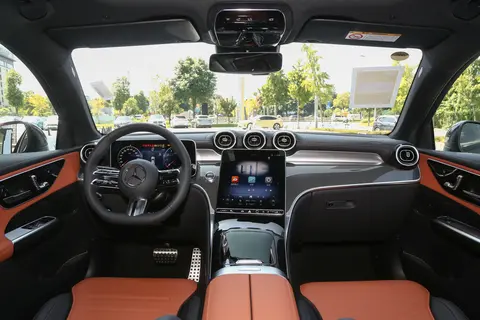 内饰方面,2026款奔驰GLC轿跑SUV配备有悬浮式仪表盘以及竖向布局的中控屏。配备奔驰最新第三代MBUX智能人机交互系统,支持“读心语音助理”、高德定制导航以及网易云音乐、哔哩哔哩、爱奇艺等第三方应用。