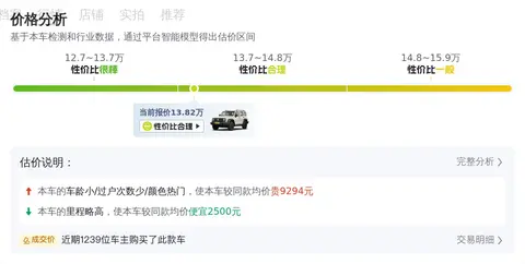 报价低于市场行情,坦克300 2021款 越野版 2.0T 挑战者的市场行情价是14.23万-17.27万,它的报价则是13.82万,价格上有很大优势,同时保值率也较高。
