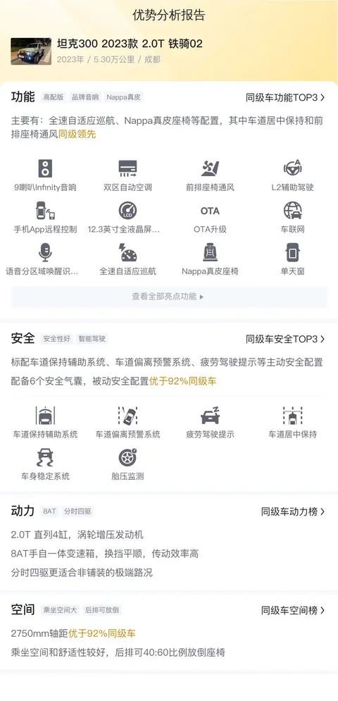 缺点就是,插混结构后期保养和维修的成本可能会比燃油车高一些,这辆坦克300 2023款 2.0T 铁骑02过户过一次,看个人接受程度了,不过价格让步给的挺多。