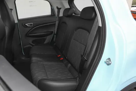 直到后来逛到零跑的 4S 店,看到 T03 那一瞬间,我心里就俩字:妥了!这小车是五门四座的,后排乘客想上车,直接开门就坐,不用像两门车那样费劲挪座椅,多方便啊!而且它轴距有 2400mm,比熊猫 mini 整整长了 420mm,比海鸥也多了快 100mm。我身高 175cm,坐进后排,膝盖前面居然还有一拳的空隙,这哪像个微型车啊,空间表现确实出色!