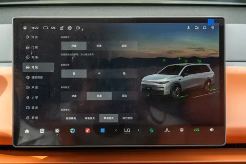 车内智能配置也很有看头。整车配备三块大屏,10.25英寸全液晶仪表盘、14.6英寸2.5K中控触摸屏和10.25英寸副驾娱乐屏,三屏联动,支持“飞屏交互”,导航信息可以同步显示,副驾驶还能独立连接蓝牙耳机播放音乐或视频,不影响主驾导航播报,兼顾驾驶安全和乘员娱乐。后排还有15.6英寸高清吸顶屏,分辨率1080P,支持语音、手机APP遥控和触控操作,家长能远程控制儿童娱乐内容和时间,避免孩子盯屏过久。车机搭载的是高通骁龙SA8295P芯片,采用5nm工艺,AI算力达到30TOPS,配合Leapmotor OS 4.0 Plus系统,反应灵敏流畅,滑动切换APP毫无卡顿。