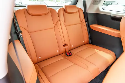 空间表现是家庭用户最为关注的部分,零跑C16 2026款 增程式 280激光雷达智尊版 6座采用2+2+2的座椅布局,空间利用率高达67.2%,车内容积达到5290L,在同级中表现突出。以身高180cm的体验者为例,前排调整至合适坐姿后,头部和腿部空间均有约一拳的余量,宽大的座椅包裹性良好,带来不错的舒适感。二排座椅支持电动调节,前后移动及左右滑动功能让空间分配更灵活,腿部空间约为两拳,头部空间也相当充裕,长时间乘坐不易感到压抑。三排座椅得益于凹槽式车顶设计和脚部镂空设计,即便是成人也能拥有约一拳的腿部空间,坐姿并不局促。值得一提的是,二排座椅支持一键电动外侧滑,中央通道可扩展至190mm,方便三排乘客上下车,这种设计在家庭出行场景中非常实用。