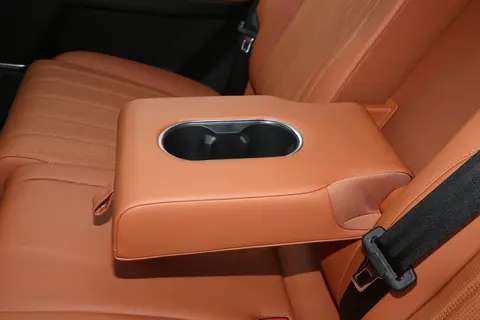 中央扶手区的配置很实用,有 50 瓦的无线快充面板,手机放上去就能充电,不用再找充电线,我平时开车时手机就放上面,到地方刚好充满电。独立的双杯架能固定水杯,就算是急转弯,水杯也不会晃洒,之前带老人出门,老人用保温杯装的热水,全程都没洒过。