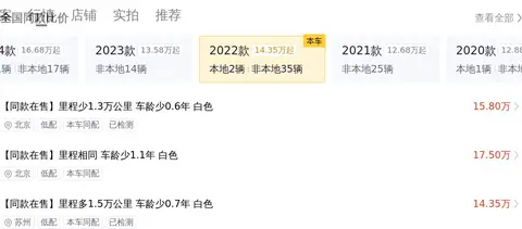 奔驰CLA 2022款 CLA 200 四门轿跑车,新车含税价为32.76万,现在的二手车报价是14.58万,2021年6月上牌,在此期间0过户。