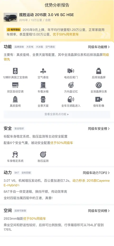 综上所述的新车含税价、用车成本、市场行情、优势分析、同款比价等数据仅供参考。在配置部分,因为二手车非标品,车辆可能会存在配置改装的情况,具体车况信息需要线下结合车辆实际情况进行综合参考。