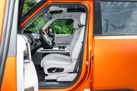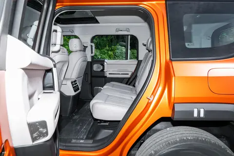 配置上,全车标配中央差速锁、前桥差速锁与后桥差速锁,“三把锁” 的加持让车辆在泥泞、湿滑、岩石等低附着力路面上,能快速分配动力,避免车轮打滑,且锁止响应时间控制在 0.1 秒内,提升了越野时的操控稳定性。同时,空气悬架与 CDC 可调阻尼减振器的组合,让车辆离地间隙可在 150 至 350 毫米之间灵活调整,配合 35 度接近角与 28 度离去角,进一步提升了通过性。此外,智能全地形系统能自动识别泥沙、岩石等路况,并针对性调整动力输出,降低了越野操作门槛,即便经验不足的驾驶者也能从容应对复杂地形。