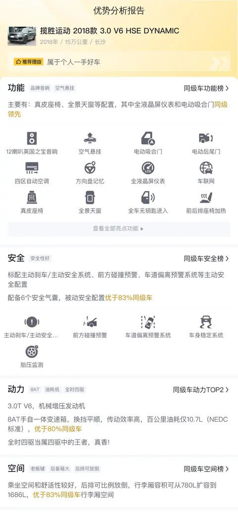 综上所述的新车含税价、用车成本、市场行情、优势分析、同款比价等数据仅供参考。在配置部分,因为二手车非标品,车辆可能会存在配置改装的情况,具体车况信息需要线下结合车辆实际情况进行综合参考。