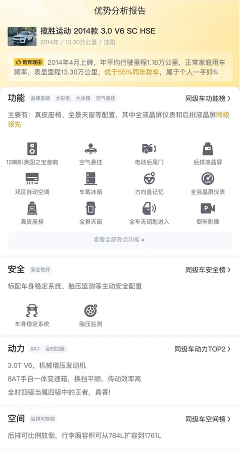综上所述的新车含税价、用车成本、市场行情、优势分析、同款比价等数据仅供参考。在配置部分,因为二手车非标品,车辆可能会存在配置改装的情况,具体车况信息需要线下结合车辆实际情况进行综合参考。
