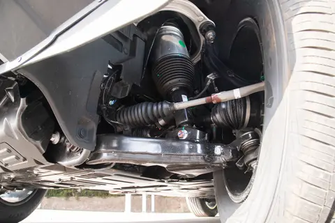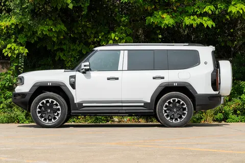 底盘更是 “家用越野两头顾”:前置四驱 + 双叉臂独立悬挂,还标配空气悬挂,能调软硬高低,过减速带、烂路时,车身滤震很舒服,不颠;非承载式车身 + 前后差速锁 + 蠕行模式,轻度越野比如走个炮弹坑、爬坡,都能稳住。唯一差别是接近角 / 离去角(5 座 35°/28°,6 座 40.3°/32.3°),这是因为 6 座整备质量重了 82kg,底盘微调适配的,日常开根本感觉不出来。