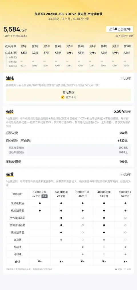 首先我们先了解下这辆车的基本信息,该车的具体版本是:宝马X3 2025款 30L xDrive 领先型 M运动套装,黑色外观,2025年5月上牌,表显里程0.3万公里,四驱,国VI排放标准,车源地和上牌地均为东莞,未过户。该车新车指导价39.99万,目前二手车报价33.88万。