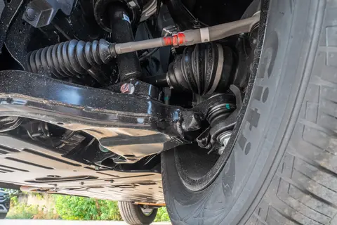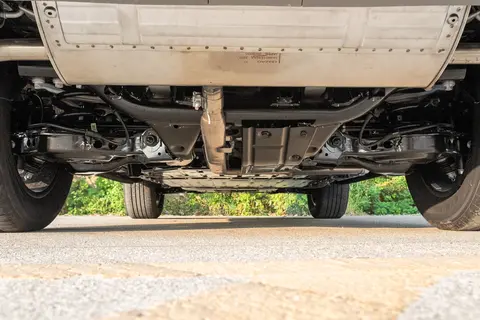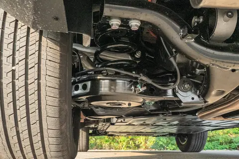 底盘和悬挂系统方面,该车采用了非承载式车身结构,前后均为双叉臂式独立悬挂,并配备了空气悬挂和电磁感应悬挂系统。悬挂支持软硬和高低调节,能够在舒适性和操控性之间找到不错的平衡。四驱系统为电动四驱,前后桥均配备差速锁,并且支持低速四驱功能,越野能力值得关注。涉水深度在非空悬状态下为900mm,空悬状态下可达970mm,应对一般的涉水路况应该没有问题。