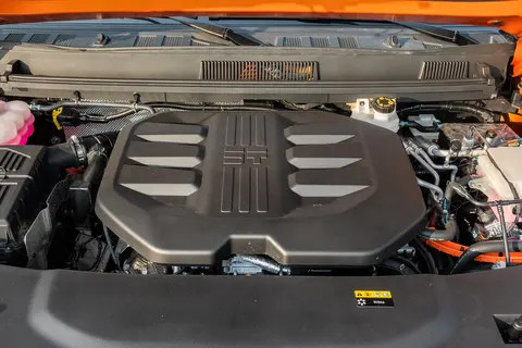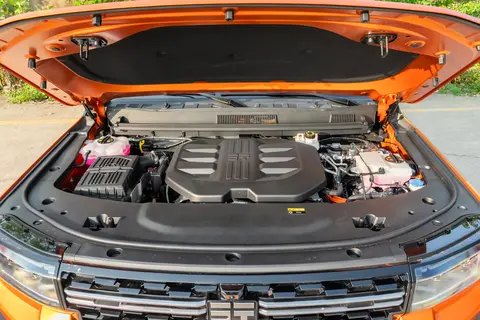 动力系统方面,这款车搭载了鲲鹏超能混动CDM-O系统,采用2.0T发动机配合双电机的布局。发动机最大功率155kW,系统综合功率达到665kW,综合扭矩为1135N·m,官方百公里加速时间仅需4.6秒。这样的动力参数在同级别车型中表现均衡,能够满足日常驾驶和越野穿越的多种需求。匹配2挡DHT混合动力专用变速箱,动力传递效率值得关注。在续航表现上,该车配备了34.1kWh的磷酸铁锂电池组,来自宁德时代。CLTC工况下纯电续航里程为150km,综合续航里程可达1400km,WLTC综合油耗为1.39L/100km。这样的能耗表现在插电混动车型中算是不错的水平,既能满足日常通勤的纯电行驶需求,也能应对长途出行的续航要求。