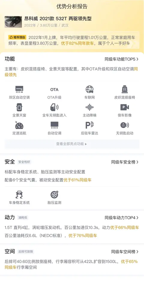总结:在选购二手车时,重要的是找到一辆符合自己需求且价格合理的车辆。这辆2021款昂科威532T两驱领先型,无论是从外观内饰、动力性能、车辆售价还是用车成本等方面来看,都展现出了较好的综合表现。如果您正在寻找一辆中型SUV作为家庭或商务出行的交通工具,这辆昂科威无疑是一个值得考虑的选择。