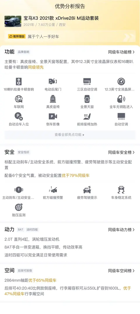 综上所述的新车含税价、用车成本、市场行情、优势分析、同款比价等数据仅供参考。在配置部分,因为二手车非标品,车辆可能会存在配置改装的情况,具体车况信息需要线下结合车辆实际情况进行综合参考。
