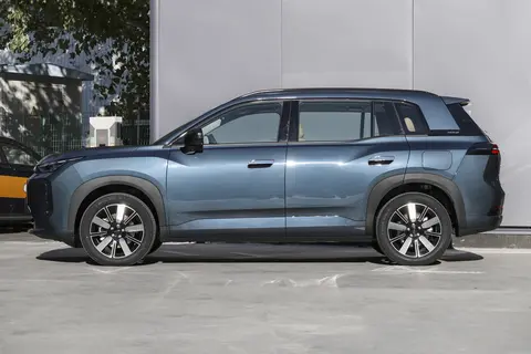 车身侧面,埃安AION i60整体车身较为方正,应用磨砂黑色轮眉以及半隐藏式门把手,车顶部配有行李架。实拍车型采用19英寸多条辐轮辋,搭配的轮胎规格为225/45 R19。此外,根据配置不同新车还提供18英寸轮辋可选。值得注意的是,两种动力车型的充电口位置不同,纯电版车型充电口位于右前翼子板处,增程版车型充电口位于左后翼子板处。