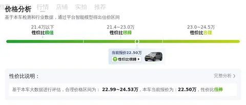 市场行情也是影响车辆价值的重要因素。目前,这款车型的二手车指导价为22.5万元。用车成本也是每个车主必须考虑的实际情况。根据估算,这辆车的年均综合用车成本在2.1万元左右,当然具体用车成本金额还是根据车辆的实际使用情况而决定的。