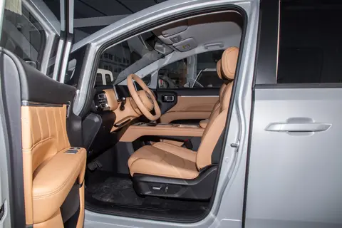 舱内座椅采用了2+2+3的七座布局设计,这一布局不仅合理分配了乘坐空间,更在二排特别提供了独立座椅的标配,使得每位乘客都能享受到更为私密和专属的乘坐体验,在舒适性供应方面得到了明显强化。座椅功能方面的提升相对有限一些,但主驾驶座椅标配了电动调节设计,无极调节效果可将幅度变化把控得更为细致,无论是微调还是大幅度调整,都能精准响应用户需求,给予用户良好的体验感。座椅调节内容较为简单,主驾支持三项调节功能,副驾则提供两项整体调节,同时分化出头枕板块的独立调节能力,这一设计还能根据用户的个人喜好与习惯进一步提升舒适性,满足多样化的乘坐需求。二排座椅享有前后移动和靠背调节的支持,无论是商务工作应用还是日常家庭代步,都能提供足够的便利与舒适,充分适应多种使用场景。