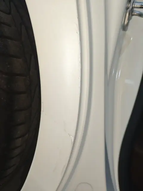 在外观检测中,这辆车在右后翼子板处有剐蹭的情况。