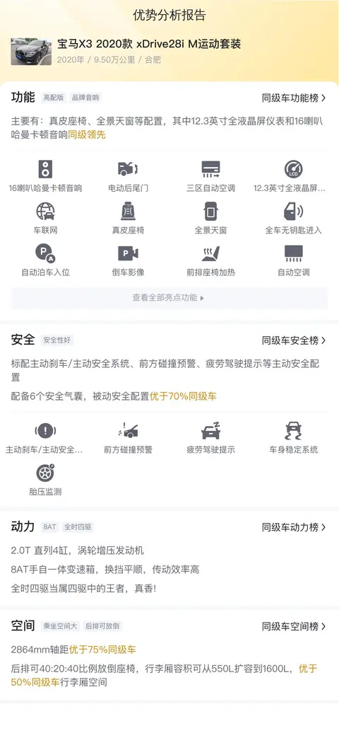 综上所述的新车含税价、用车成本、市场行情、优势分析、同款比价等数据仅供参考。在配置部分,因为二手车非标品,车辆可能会存在配置改装的情况,具体车况信息需要线下结合车辆实际情况进行综合参考。