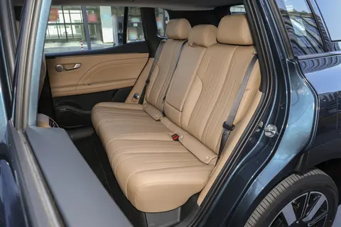 除了核心的增程技术和颜值设计,AION i60增程版在实用配置上也没有让人失望,虽然这部分不是重点,但每一项配置都很贴合家用场景,提升了用车体验。对于家用SUV来说,空间是刚需,AION i60增程版在空间利用率上做得非常出色。它不仅能轻松容纳5名成年人,还拥有非常可观的储物空间。常规状态下,后备箱容积就很充裕,能轻松放下3个行李箱和一些日常杂物。如果需要装载大件物品,后排座椅可以完全放平,形成一个平整的“大平层”,此时储物空间会大幅提升,就算是自行车、婴儿车等大件物品也能轻松装下,真正实现了“5人8箱”的装载能力,不管是日常购物还是节假日露营,都能满足需求。车内的储物空间也很丰富,门板储物格、中央扶手箱、杯架等一应俱全,能方便地存放手机、水杯、钥匙等小物件,实用性很强。