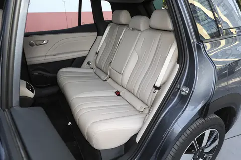 这款车是紧凑SUV定位的车型,但是轴距有2775mm。在同级车型中,属于头部阵营了。同级的热门车型宋Pro DM的轴距为2712mm。哈弗大狗的轴距则为2738mm。埃安AION i60参数上是很有优势的,实际的空间表现也相当让人满意。前排的腿部空间非常充裕。175cm的个子坐进去,腿脚依然有足够的位置舒展。这款车的仪表台下方是做了处理的,为腿部掏出了不少位置。