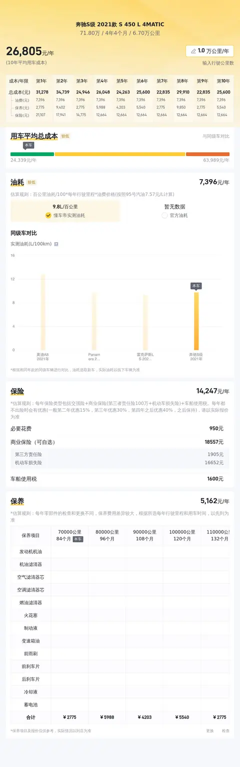 在用车成本部分,根据估算,这辆车年均综合用车成本大概在每年2.7万元左右。这项花销是跟车主的实际用车场景和使用强度有直接变化的。