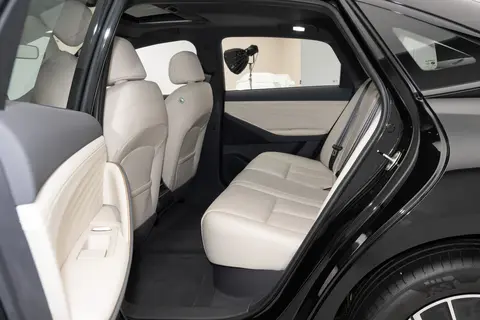 侧面造型方面,车顶采用了溜背式造型,线条感显得比较干练;腰线采用了贯穿式设计,点缀出了车身车身侧面的层次感;门把手采用了弹出式造型,能够起到降低风阻的作用;轮眉和侧裙部分设计有隆起的筋线,带来了一定的肌肉感;轮毂采用了五辐式低风阻造型,风格还算简洁。