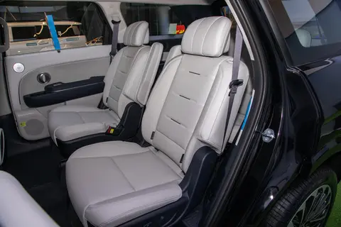 这次体验的是6座版,第二排是两个独立座椅,待遇和前排差不多,通风、加热、按摩都有,那个翼式的头枕能把头和脖子都托住,长途上睡觉脑袋不会晃来晃去。中间的过道挺宽敞,去第三排直接走过去就行,不用侧着身子钻。我特别喜欢那个“舒适进入”的设计,按一下按钮,二排座椅就自己往前挪,给第三排腾出挺大的上下车空间,带老人或者孩子出门,这个细节会方便很多。7座版的二排中间能放下来当个带杯架的扶手,实用性也不错,偶尔应急多坐一个人也方便。